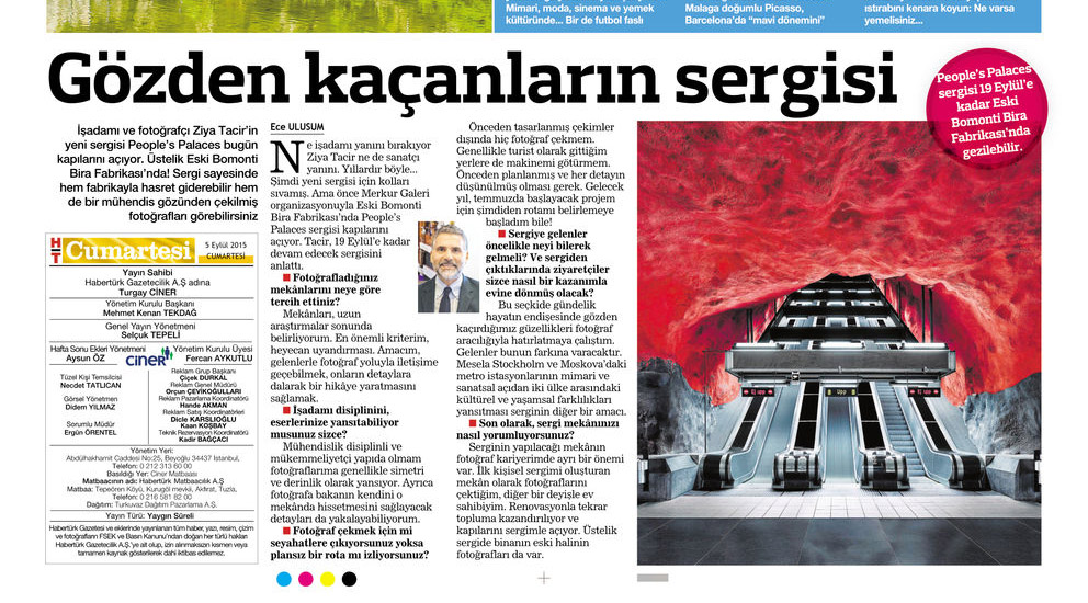 Ne işadamı yanını bırakıyor Ziya Tacir ne de sanatçı yanını. Yıllardır böyle… Şimdi yeni sergisi için kolları sıvamış. Ama önce Merkur Galeri organizasyonuyla Eski Bomonti Bira Fabrikası’nda People’s Palaces sergisi kapılarını açıyor. Tacir, 19 Eylül’e kadar devam edecek sergisini anlattı.