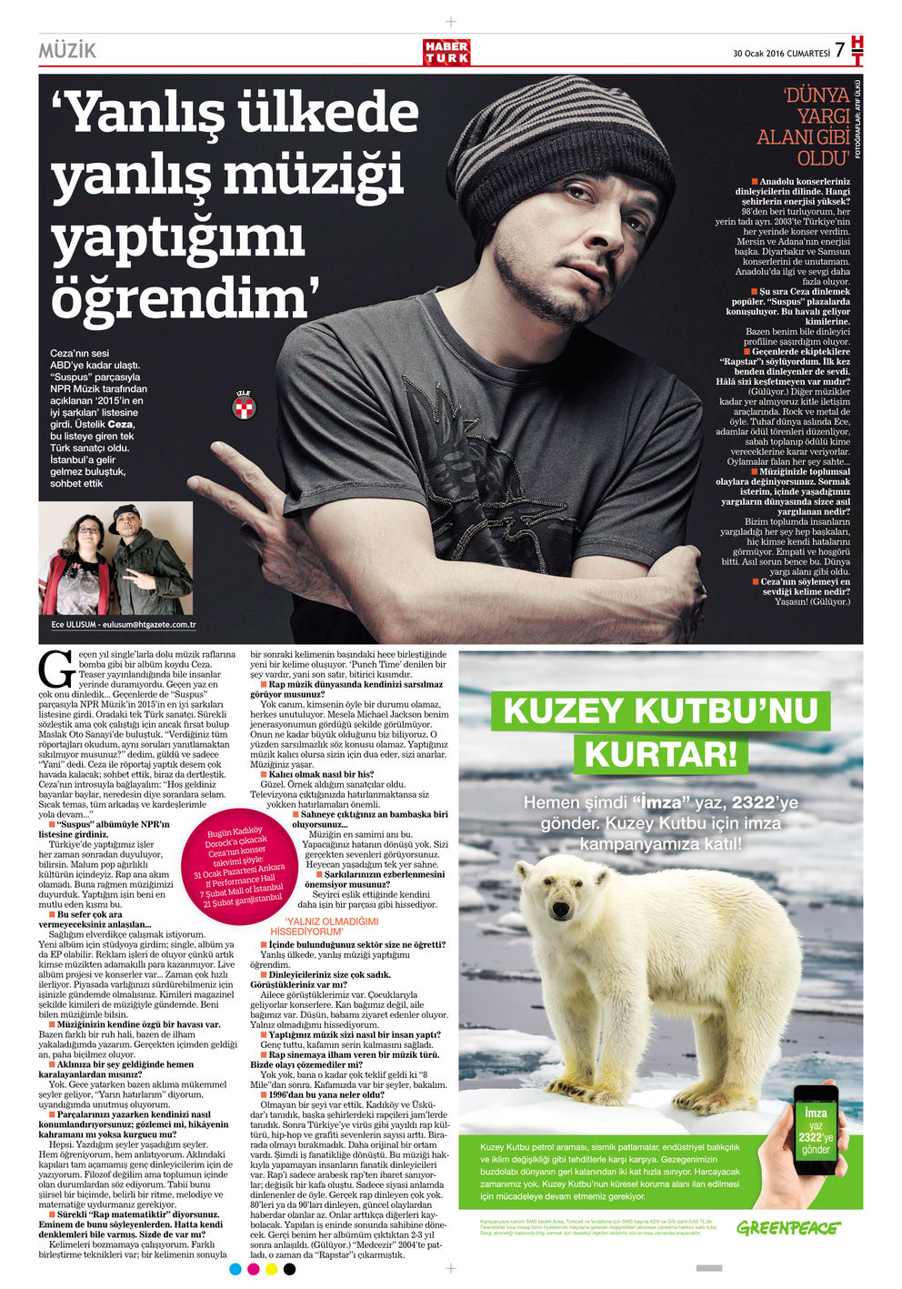 Ceza’nın sesi ABD’ye kadar ulaştı. “Suspus” parçasıyla NPR Müzik tarafından açıklanan ‘2015’in en iyi şarkıları’ listesine girdi. Üstelik Ceza, bu listeye giren tek Türk sanatçı oldu. İstanbul’a gelir gelmez buluştuk, sohbet ettik.