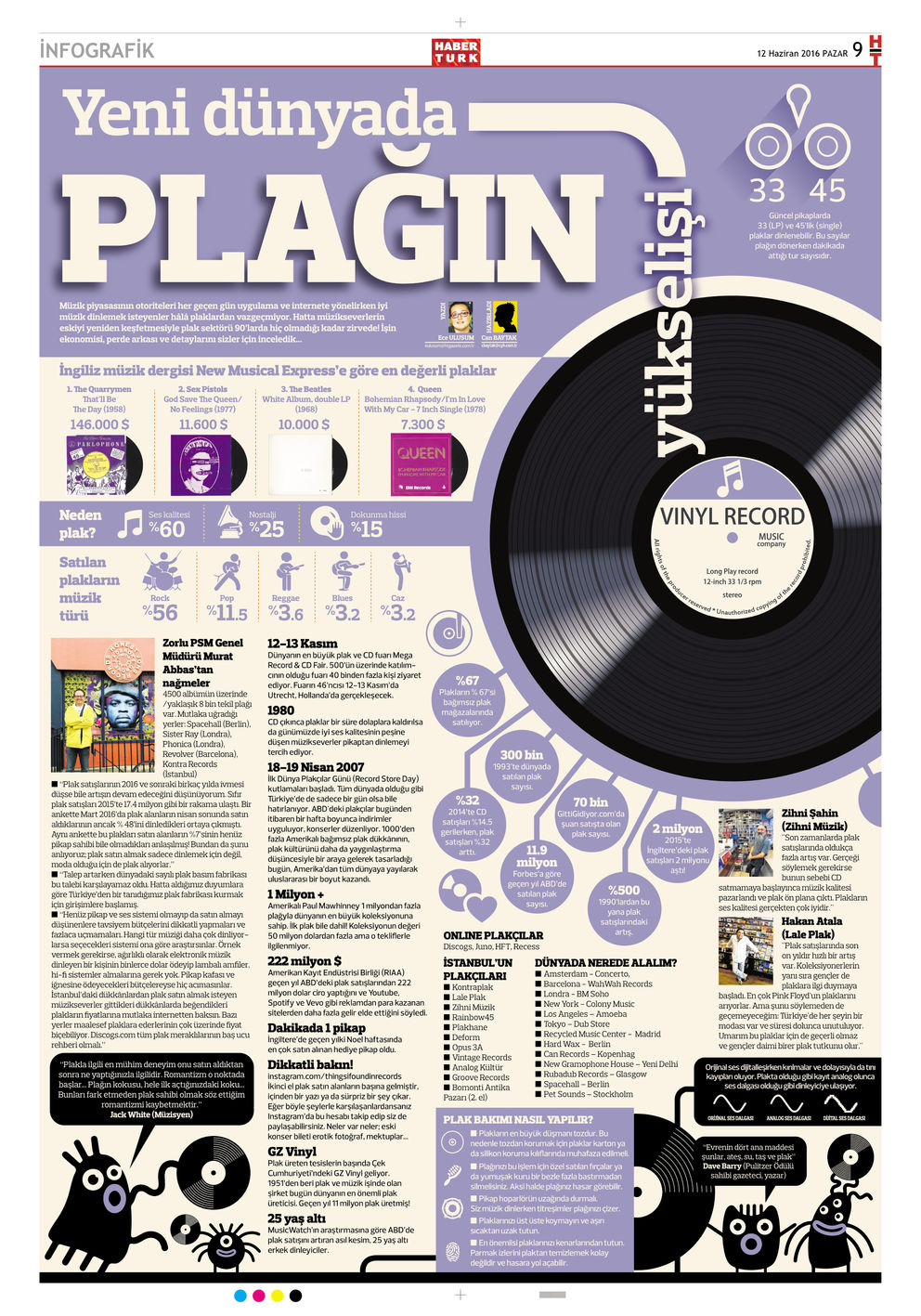 Müzik piyasasının otoriteleri her geçen gün uygulama ve internete yönelirken iyi müzik dinlemek isteyenler hâlâ plaklardan vazgeçmiyor. Hatta müzikseverlerin eskiyi yeniden keşfetmesiyle plak sektörü 90’larda hiç olmadığı kadar zirvede! İşin ekonomisi, perde arkası ve detaylarını sizler için inceledik.