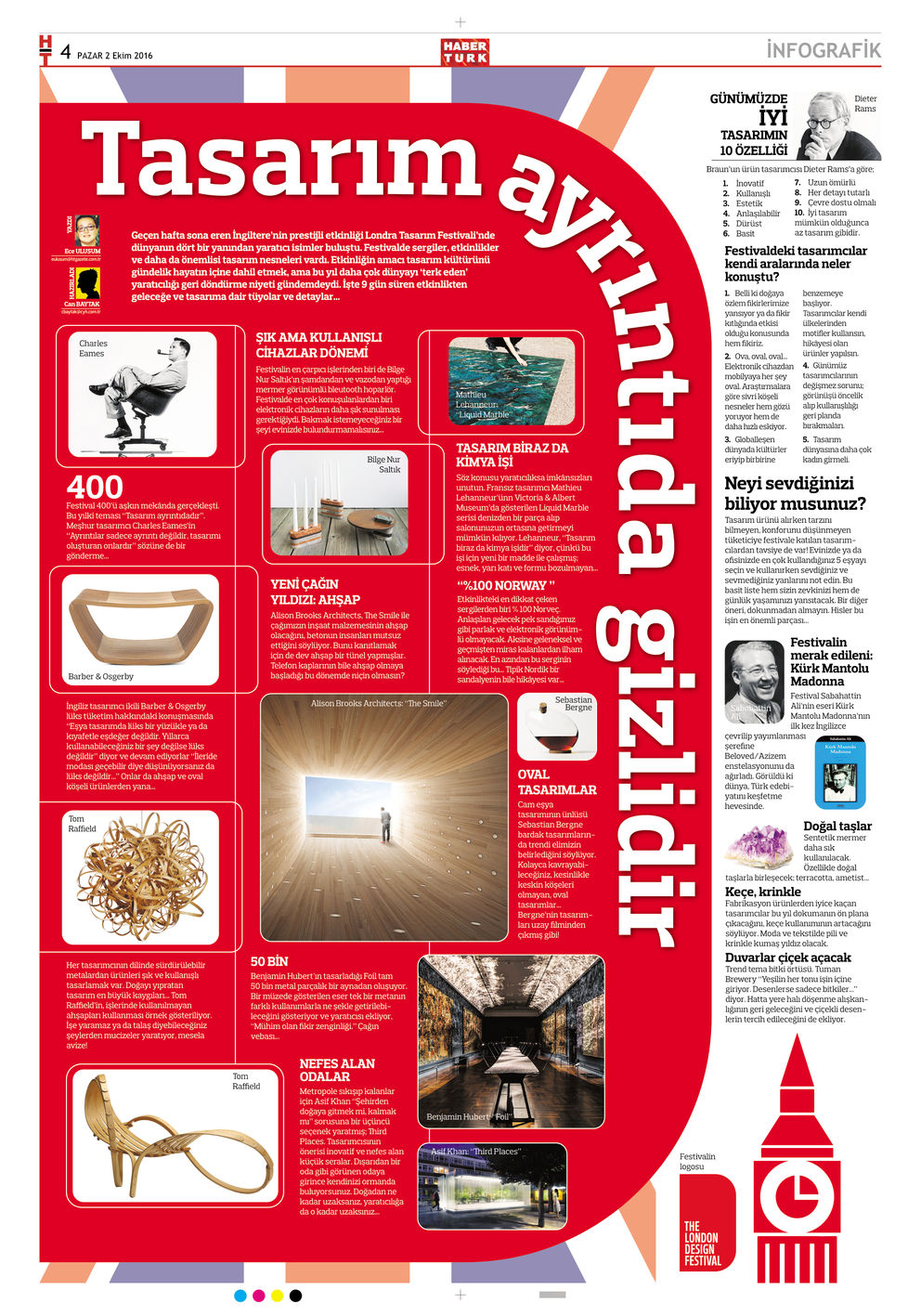 Geçen hafta sona eren İngiltere’nin prestijli etkinliği Londra Tasarım Festivali’nde dünyanın dört bir yanından yaratıcı isimler buluştu. Festivalde sergiler, etkinlikler ve daha da önemlisi tasarım nesneleri vardı. Etkinliğin amacı tasarım kültürünü gündelik hayatın içine dahil etmek, ama bu yıl daha çok dünyayı ‘terk eden’ yaratıcılığı geri döndürme niyeti gündemdeydi. İşte 9 gün süren etkinlikten geleceğe ve tasarıma dair tüyolar ve detaylar…