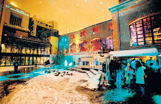 İçi dolu kutu!Geçen yıl, kar altında açılış partisiyle kapılarını aralayan Bomontiada’nın yazı da kışı da başka. Isıtıcılar dışarıya çıkıyor ve Babylon’da konser olduğu günler DJ setleri kuruluyor. İster içeceğinizi alın sobanın yanında sohbet edin, isterseniz tente altında dans edin. Bomontiada’da Kiva, Populist, Monochrome ve Kilimanjaro gibi çeşitli mekânlar da var. Üşüyünce içeride soluklanın sonra tam gaz devam.